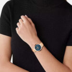 Blush Gold Elegance – HALF MOON BLACK Watch with Bracelet